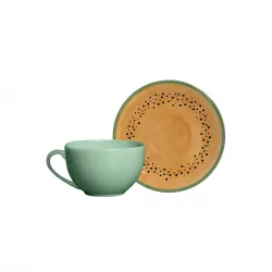 Delicado e sofisticado, o Conjunto Coup Mamão apresenta uma tonalidade suave que transmite leveza e elegância. Seu design moderno no formato coup valoriza a apresentação e torna cada momento à mesa mais agradável. Ideal para quem busca uma composição charmosa, feminina e atual, perfeita para chás, cafés e encontros especiais.